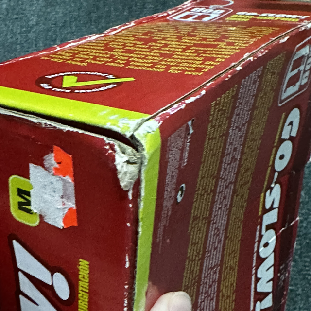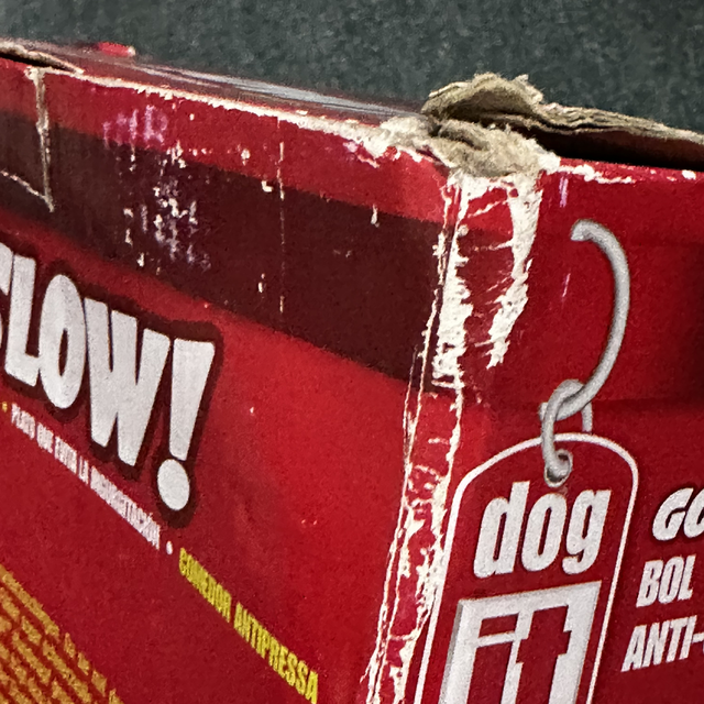 Box is not torn but looks worn due to transporting to and from events over the summer.